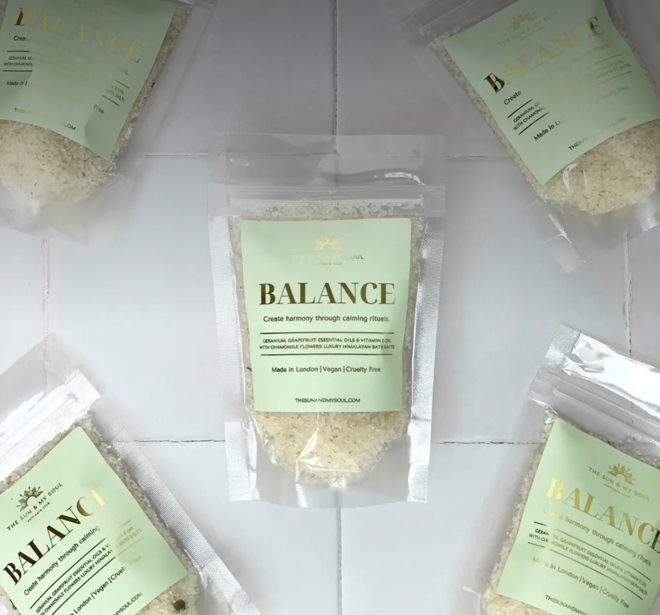 Balance Luxury Himalayan Bath Salts with Geranium, Grapefruit Essential Oils Vitamin E Oil Chamomile flowers