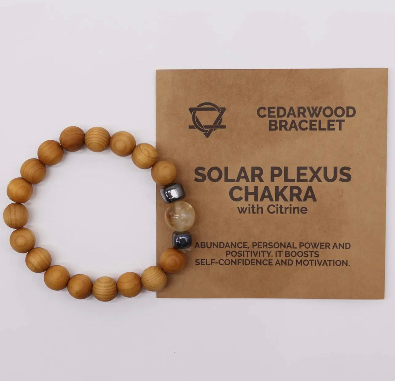 Introducing the Cedarwood Solar Plexus Chakra Bangle featuring Citrine, a symbol of abundance, personal power, and positivity. This captivating bracelet empowers the wearer to manifest their dreams with unwavering determination.