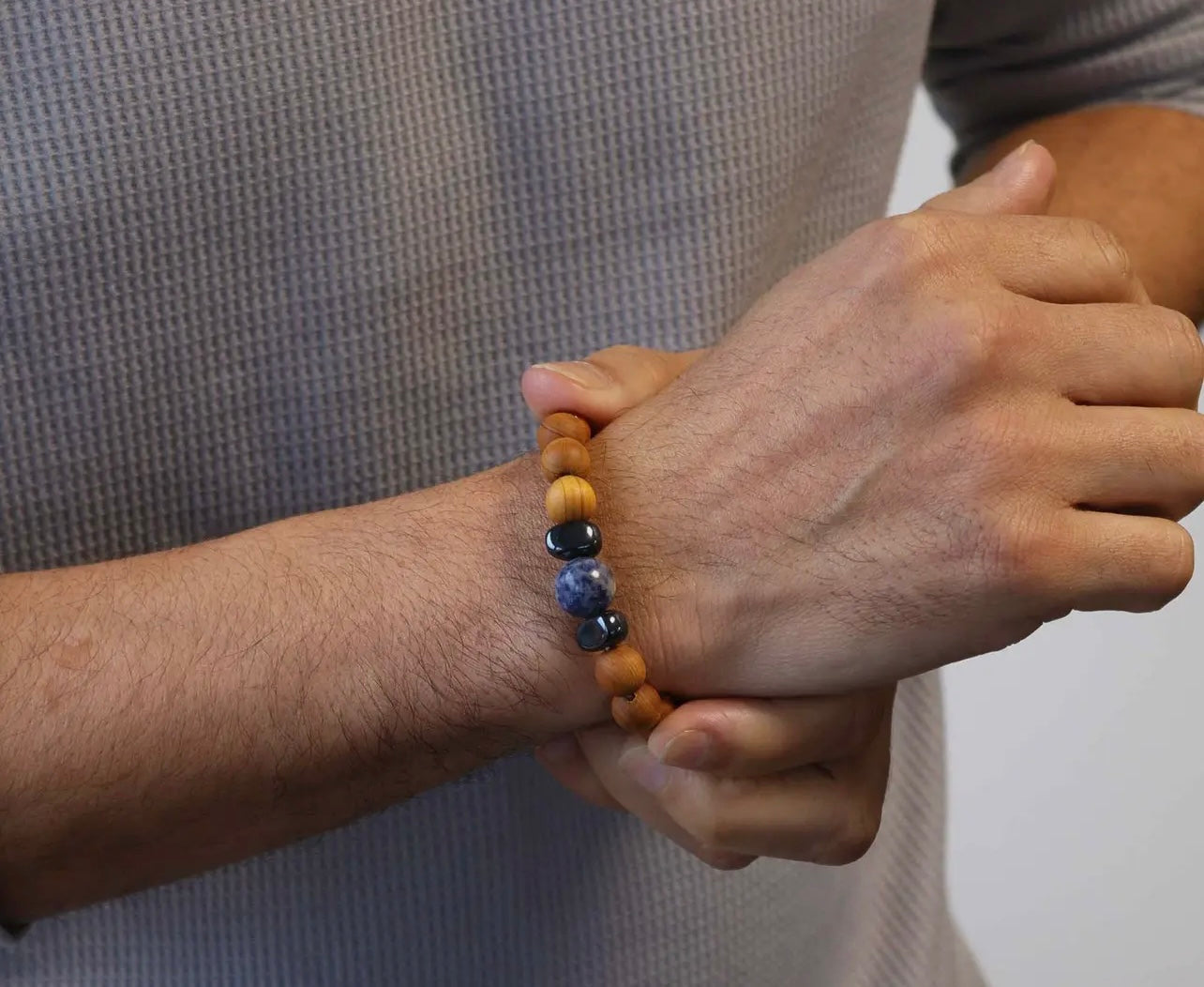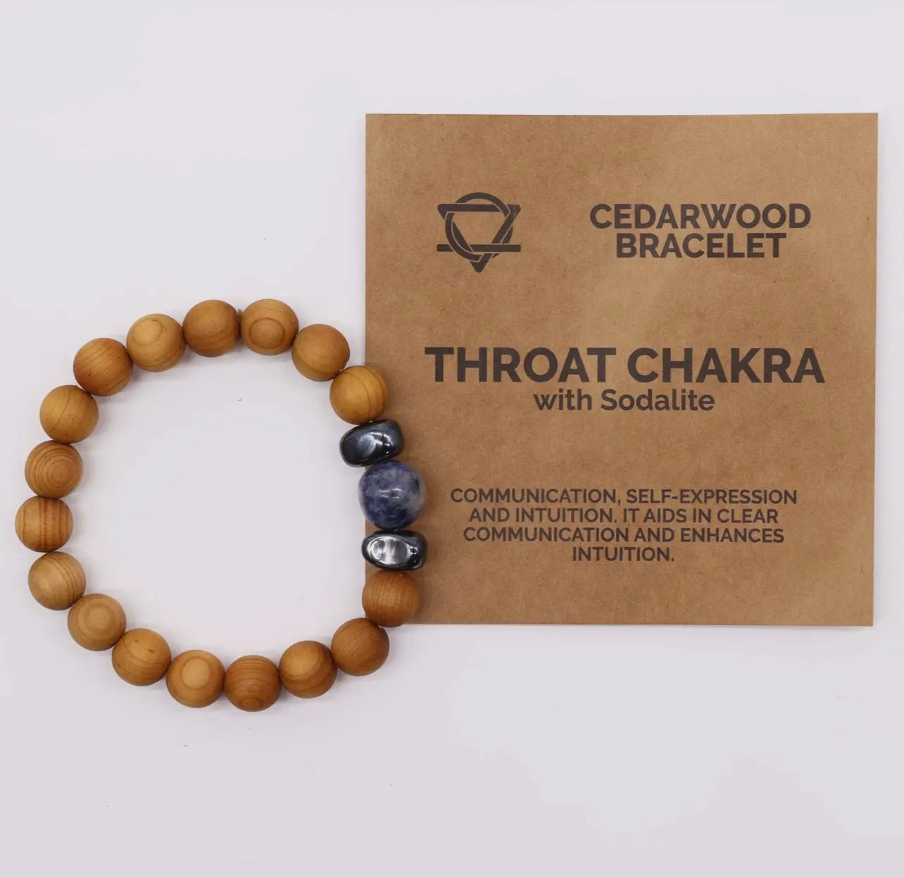 Our the Cedarwood Throat Chakra Bangle featuring Sodalite, a conduit for clear communication, self-expression, and intuition. This captivating bracelet enhances verbal expression and deepens intuitive insights, essential for your holistic wellness collection.
