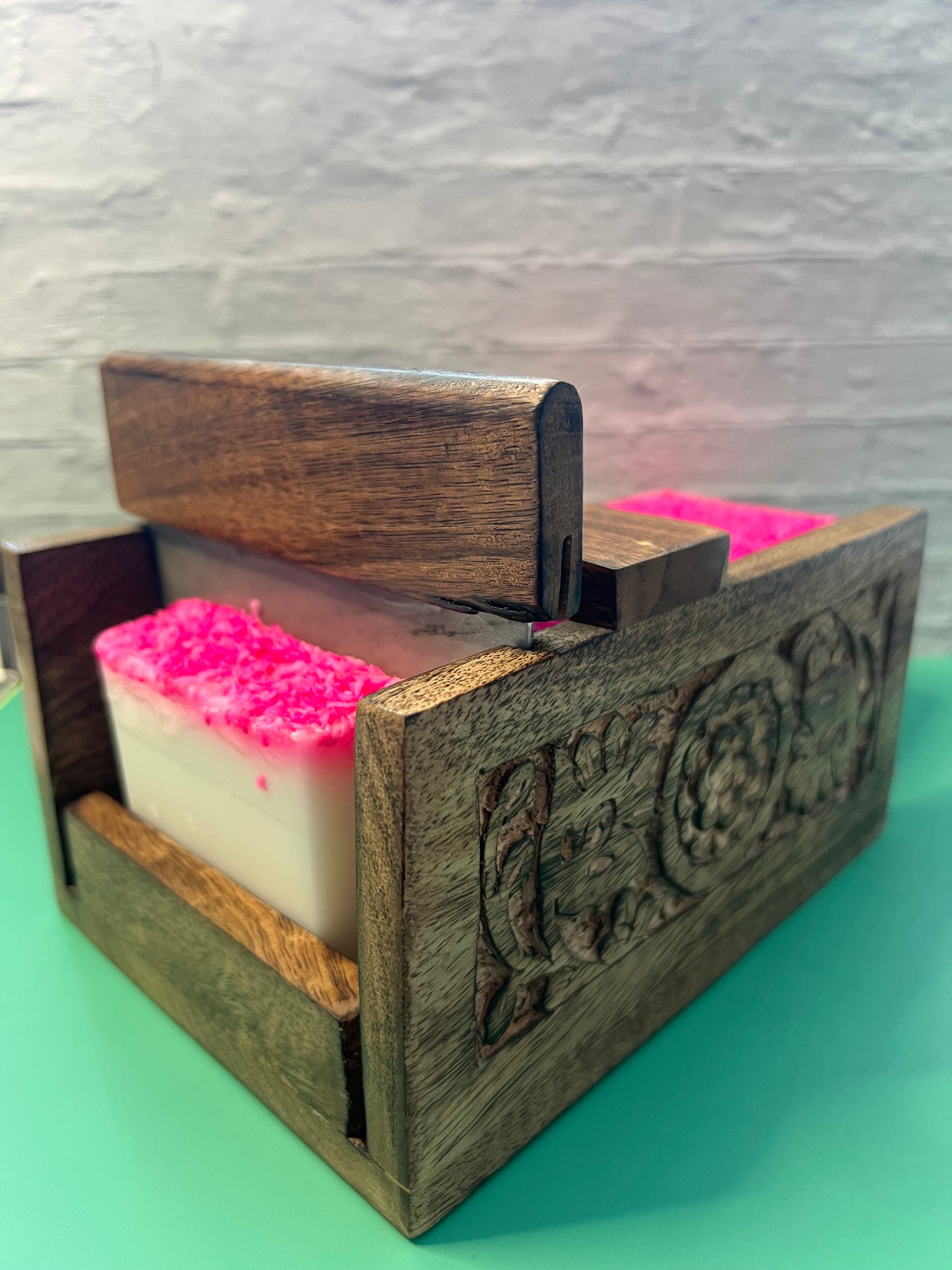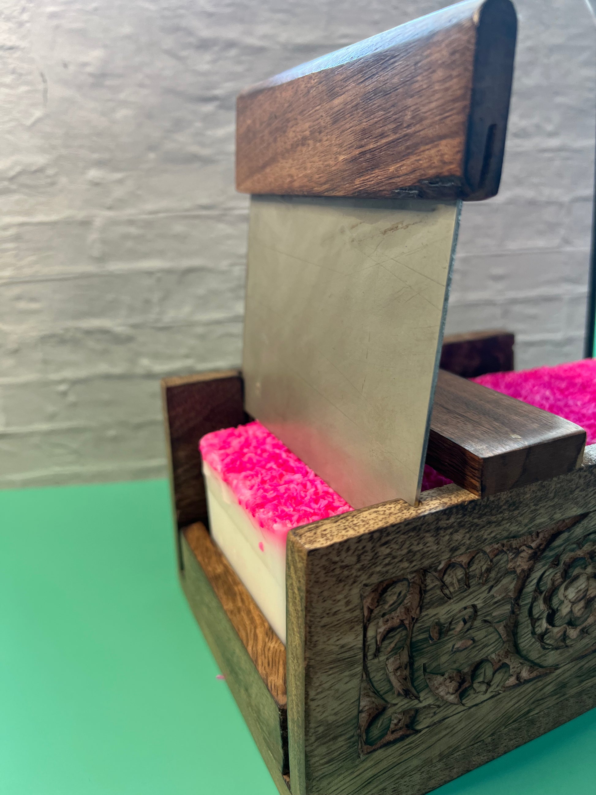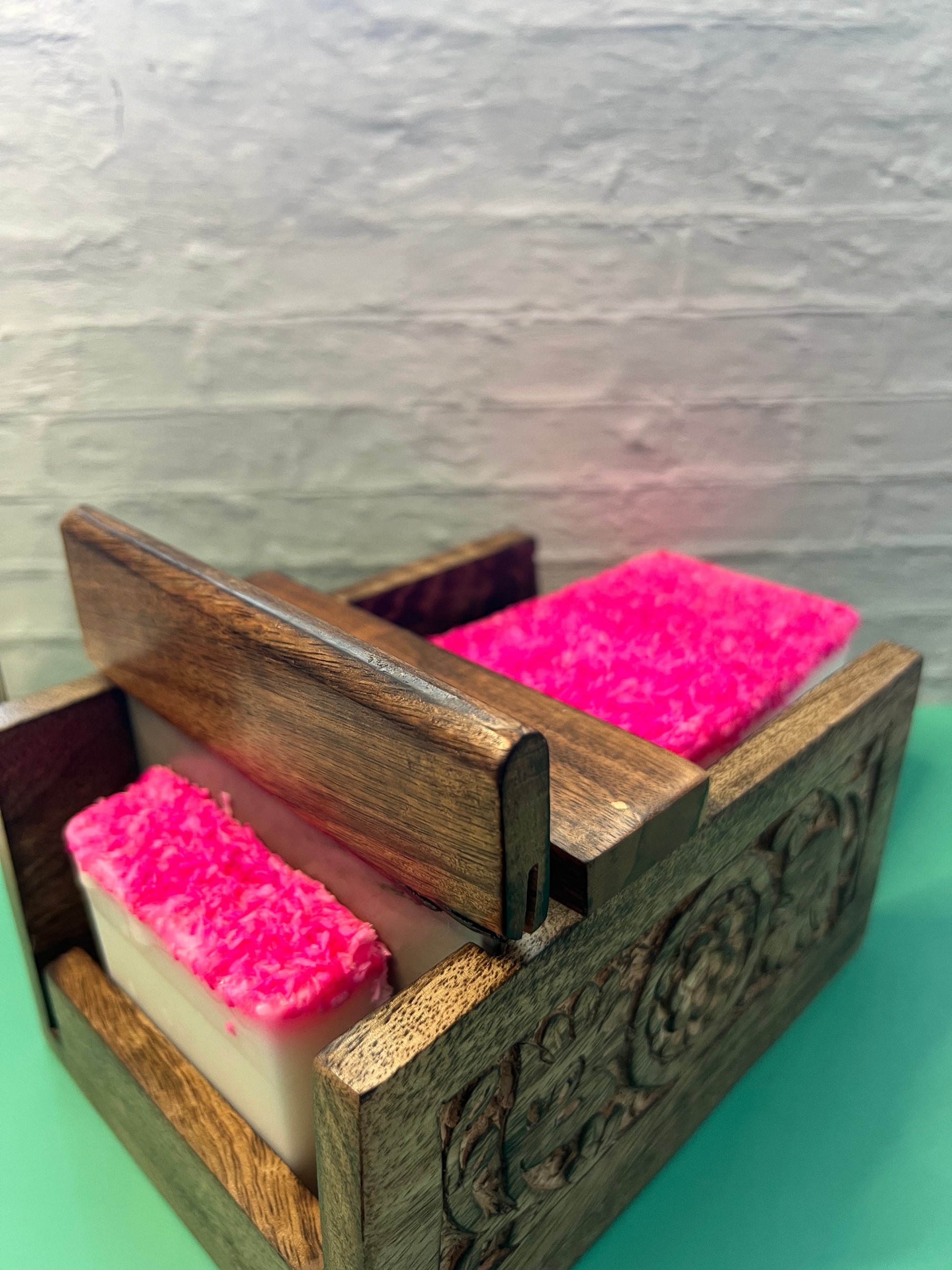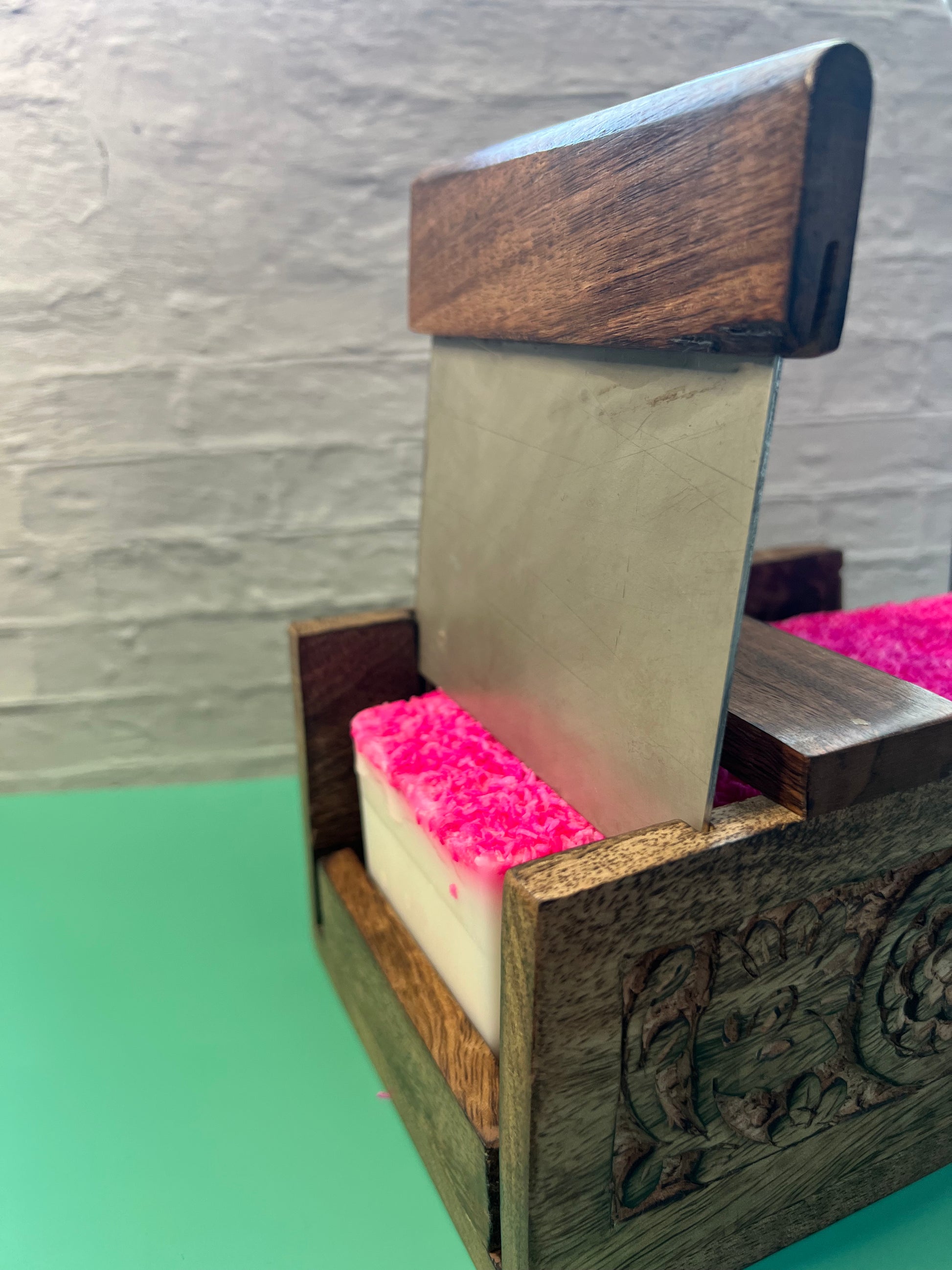 Here you will discover a host of evocative fragrances and tactile textures. Beautiful handmade soap cut and packaged from the bar.