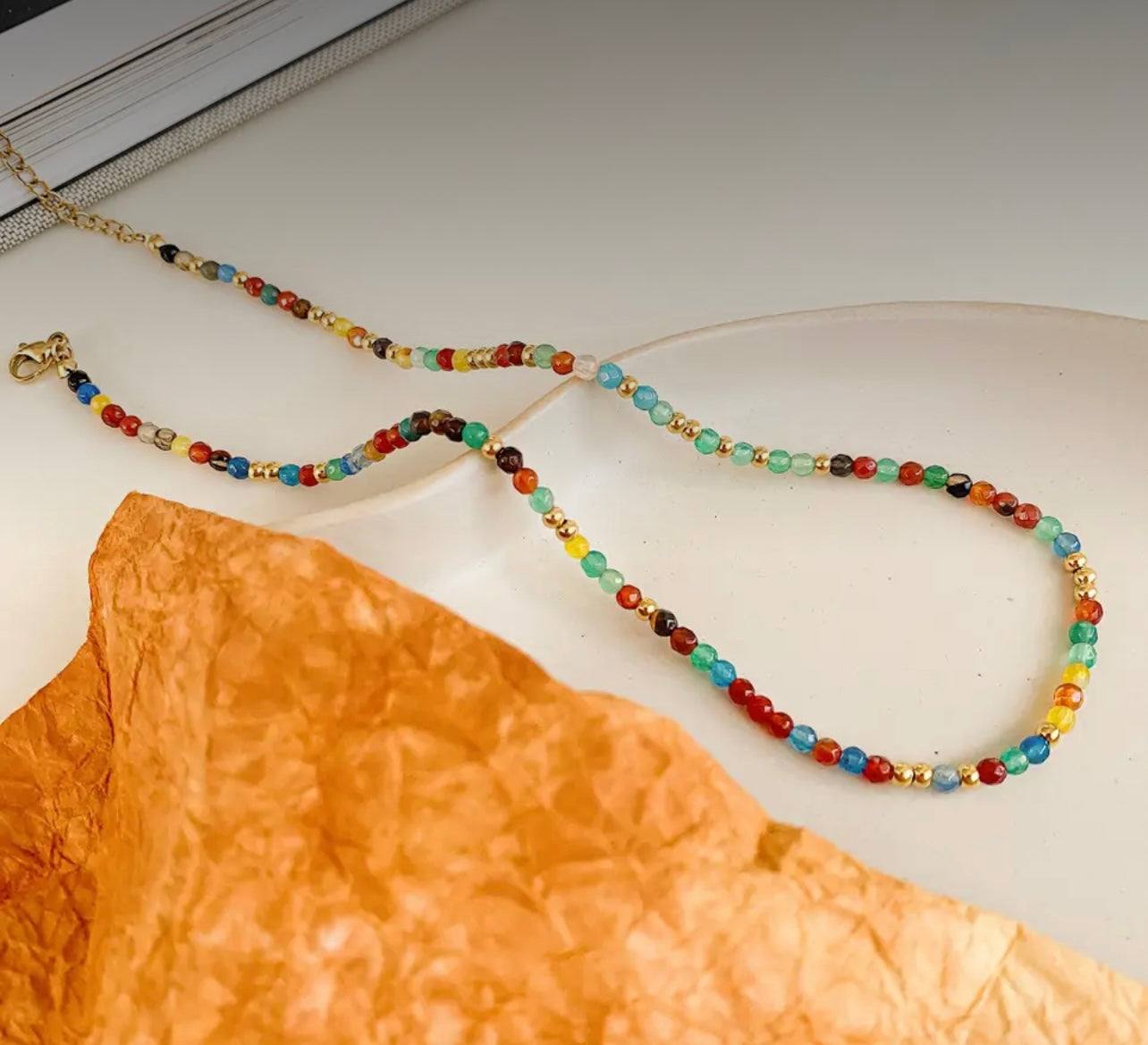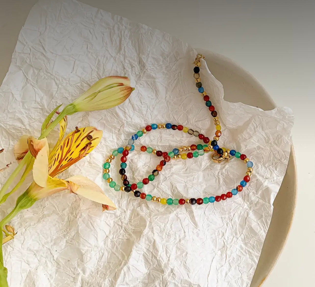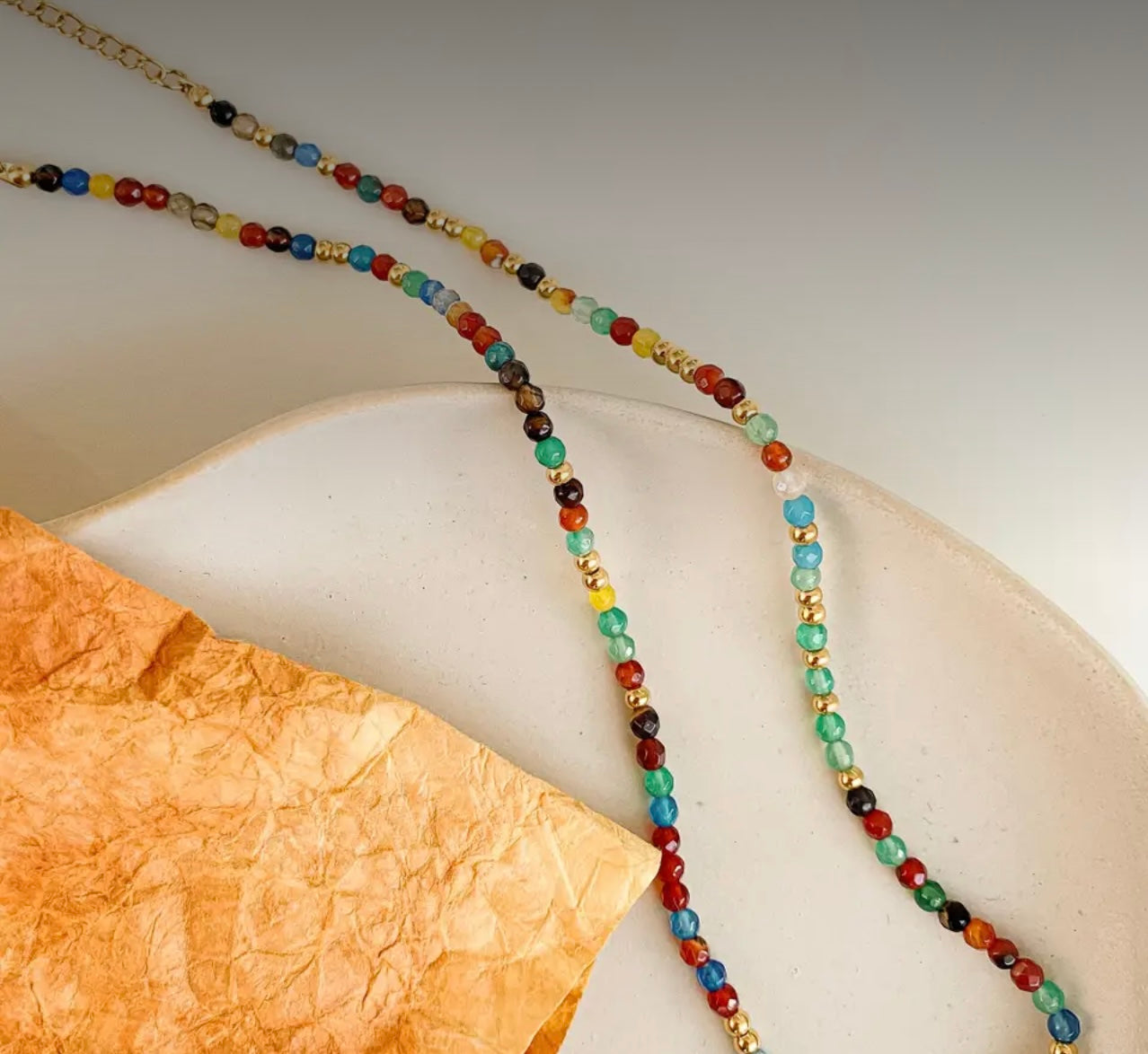 18K Gold Non-Tarnish Beaded Multi Colour Necklace