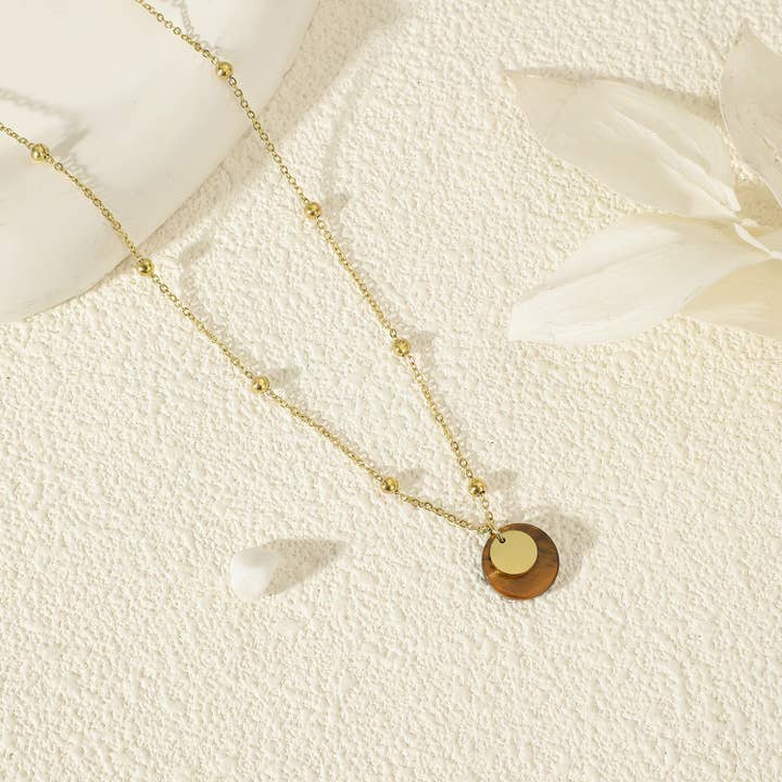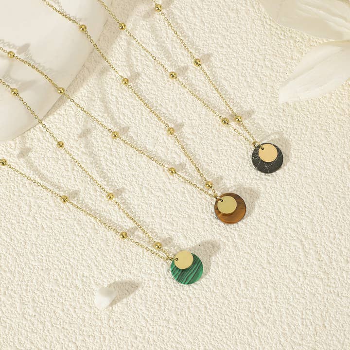 Malachite Stone Gold Chain Necklace with Engraving Plate