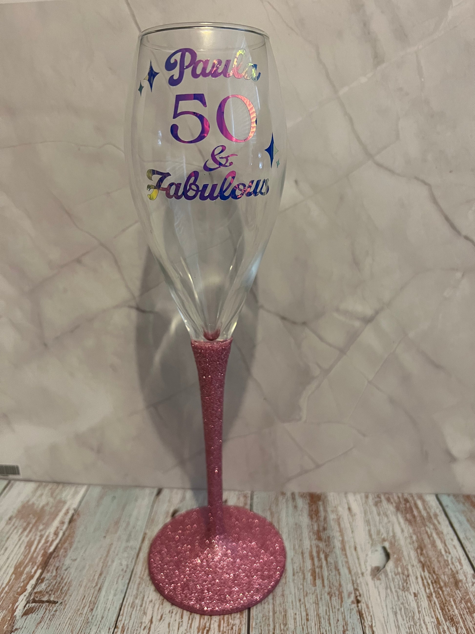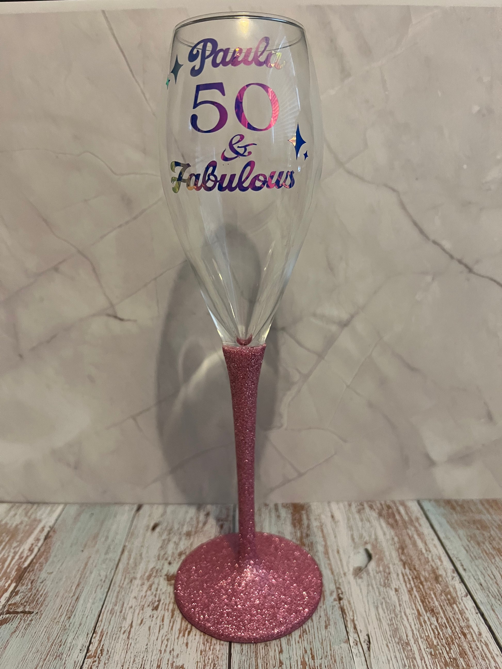 Raise a glass (or this glamorous flute) to the birthday girl! This Pink Sparkle Prosecco / Champagne Flute is perfect for adding a touch of fun and personalization to any celebration. With its glittering design and customizable options, it's sure to be a hit at any party. Cheers to that!