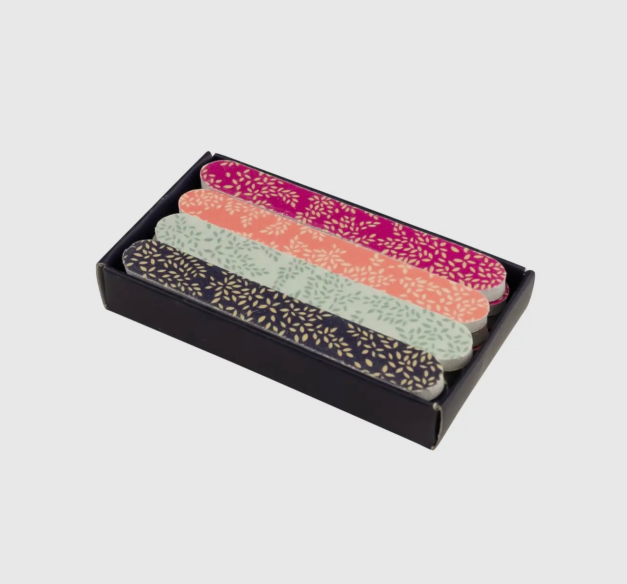 Get perfect nails anytime, anywhere with Sara Miller's mini emery board matchboxes. Each pack includes 12 mini boards adorned with a beautiful design. Keep your nails looking flawless with this travel-friendly and stylish must-have.