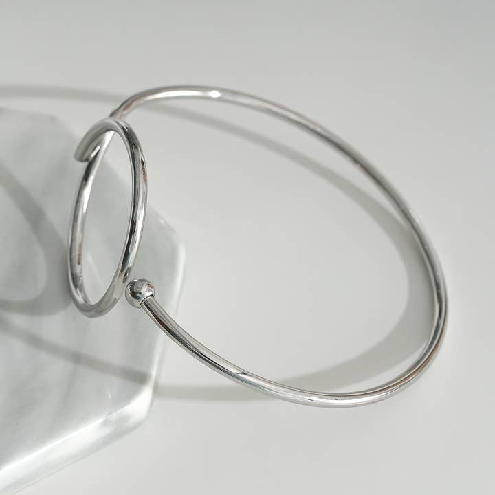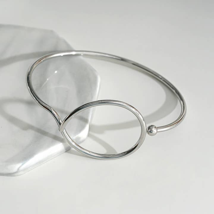 Silver Bracelet with Open Circle Bangle and Adjustable Ball