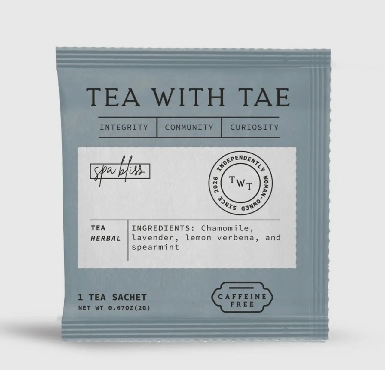 SPA BLISS (CAFFEINE FREE): The name says it all! A delightful blend of chamomile flowers, lavender flowers, lemon verbena, and spearmint.